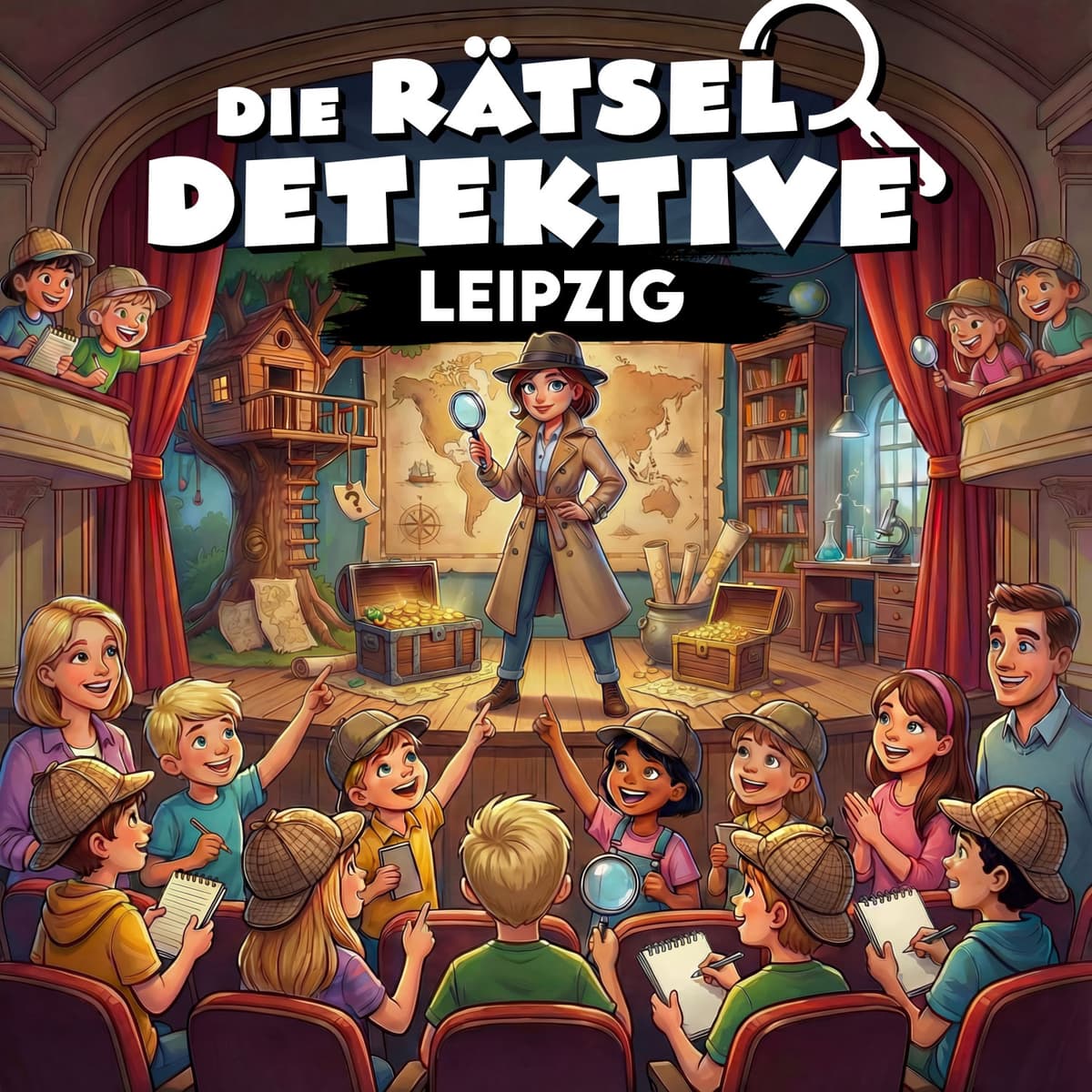 Bei den Rätseldetektiven erleben Familien ein interaktives Live-Abenteuer, in dem Kinder gemeinsam mit der Kommissarin rätseln, Entscheidungen treffen und das Geschehen aktiv mitgestalten.